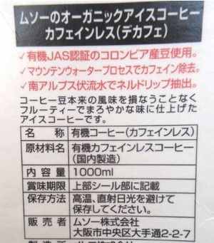 ムソー 無双 オーガニックアイスコーヒー カフェインレス無糖 1000ml
