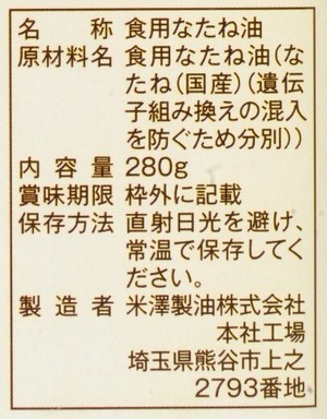 ・遺伝子組換えの混入を防ぐため分別した国産なたね種子を100%使用しています。