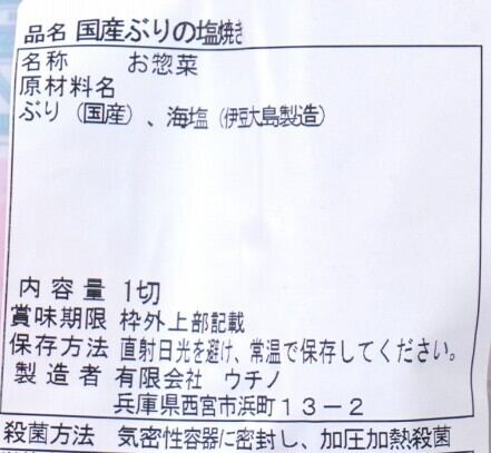創健社 ウチノ 国産 ぶりの塩焼き 1切