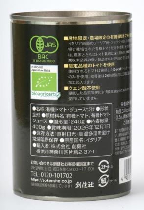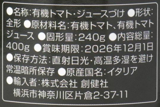 創健社 有機ホールトマト缶 400g(固形量240g)
