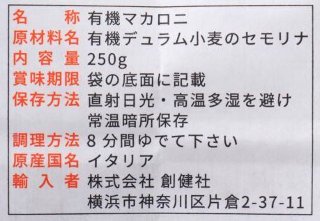 創健社 ジロロモーニ 全粒粉デュラム小麦 有機ペンネ 250g