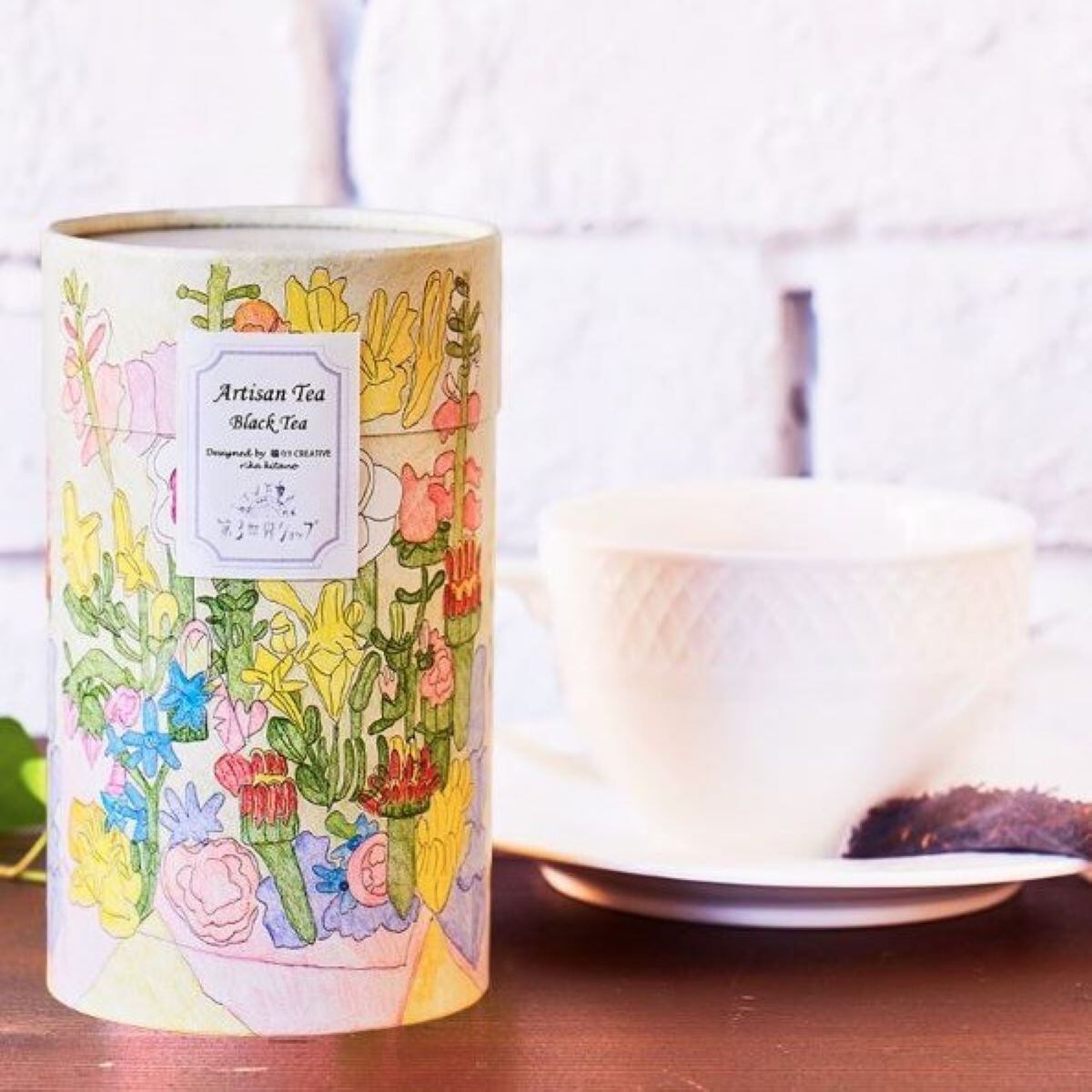 ブラックティーは、北野 里佳さんの「花束」のアートワークがデザインされたパッケージ。