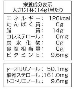 ・ビタミンE含有量:5.4㎎/大さじ1杯(14g)
