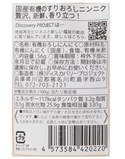 ディスカバリープロジェクト 生にん (国産有機生にんにくチューブ) 56g